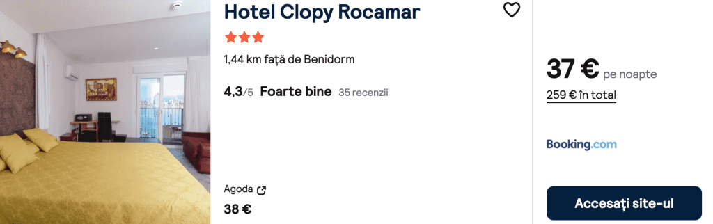 CAZARE 1: Hotel Clopy Rocamar, Preț cameră dublă 259€, Preț persoană 130€, 20-27 Ian 2026 (7 nopți)