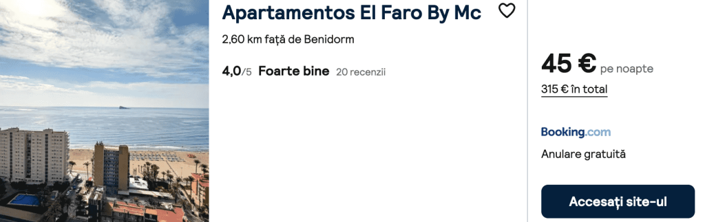 EARLY BIRD! Vacanță în BENIDORM 212€ zbor și cazare, 7 zile (București, Cluj)