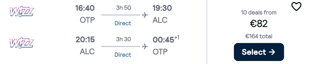 ZBOR: București -> Alicante, Preț dus-întors 82€/pers, 20-27 Ian 2026