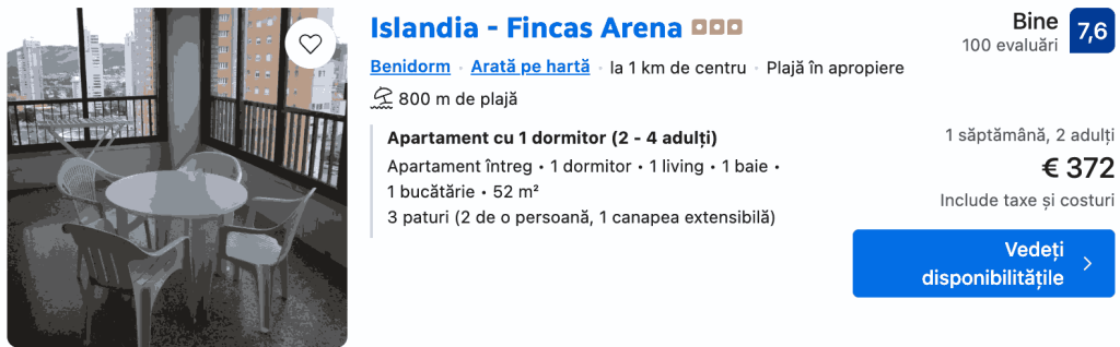 Vacanță ieftină în BENIDORM 256€ zbor și cazare 7 zile