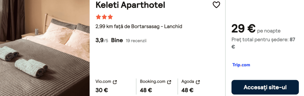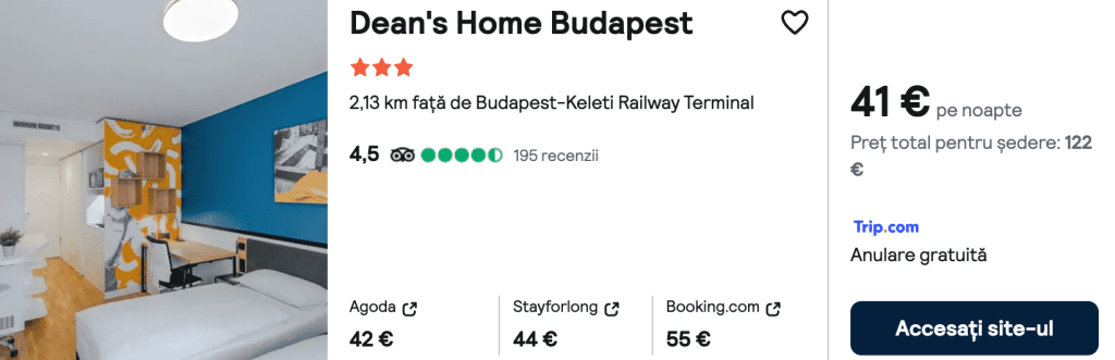 CAZARE 2: Keleti Aparthotel, Preț cameră dublă 87€, Preț persoană 44€, 26-29 Ian 2025 (3 nopți)