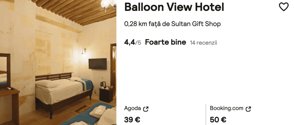 CAZARE 1 (+ mic dejun): Baloon View Hotel, Preț cameră dublă 234€, Preț persoană 117€, 19-25 Nov 2024 (6 nopți)