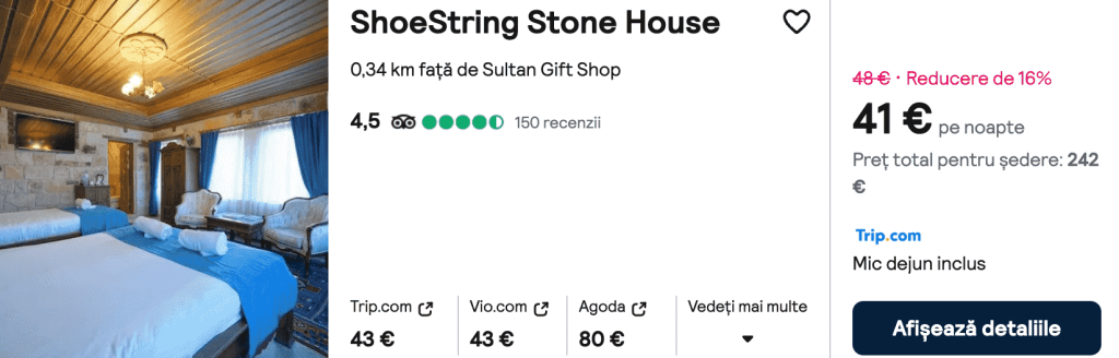 CAZARE 2 (+ mic dejun): ShoeString Stone House, Preț cameră dublă 242€, Preț persoană 121€, 19-25 Nov 2024 (6 nopți)