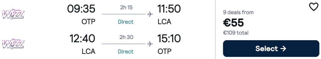 ZBOR: București -> Larnaca, Preț dus-întors 55€/pers, 11-18 Mai 2026