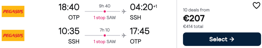 ZBOR: București -> Sharm El-Sheikh, Preț dus-întors 207€/pers, 10-17 Iun 2026