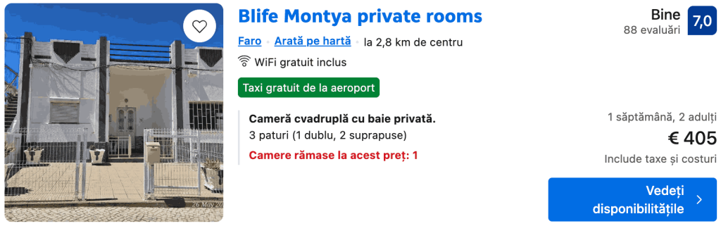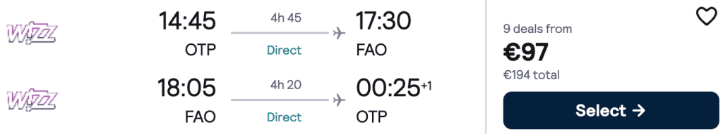 ZBOR: București -> Faro, Preț dus-întors 97€/pers, 19-26 Mai 2026
