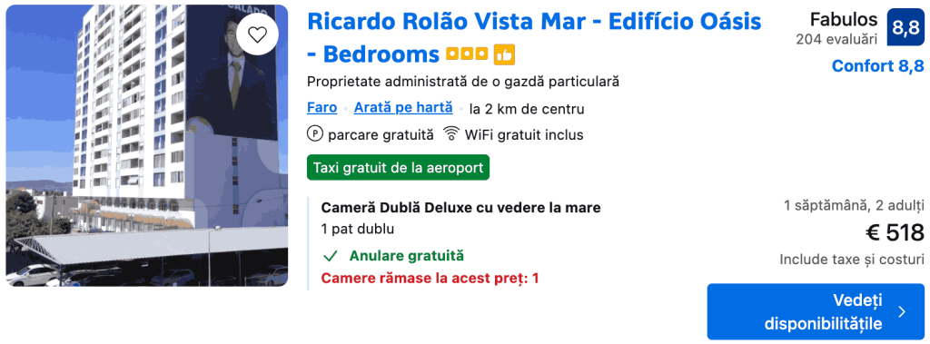 CAZARE 3: Ricardo Rolao Vista Mar, Preț cameră dublă 518€, Preț persoană 259€, 19-26 Mai 2026 (7 nopți)