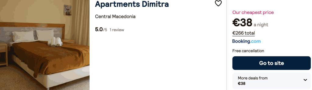 CAZARE 1: Apartments Dimitra, Preț cameră dublă 266€, Preț persoană 133€, 21-28 Mai 2026 (7 nopți)