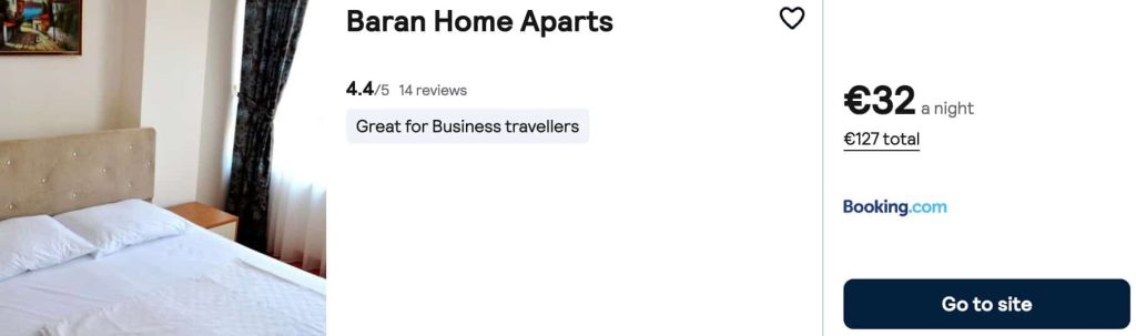 CAZARE 2: Baran Home Aparts, Preț cameră dublă 127€, Preț persoană 64€, 10-14 Iun 2026 (4 nopți)