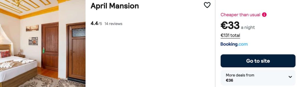 CAZARE 3: April Mansion, Preț cameră dublă 131€, Preț persoană 65€, 10-14 Iun 2026 (4 nopți)