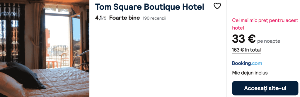 CAZARE 2 (+ mic dejun): Tom Square Hotel, Preț cameră dublă 163€, Preț persoană 82€, 20-25 Sep 2025 (5 nopți)