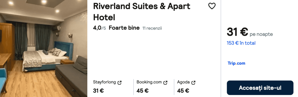 CAZARE 1: Riverland Suites&Apart, Preț cameră dublă 153€, Preț persoană 76€, 13-18 Iun 2025 (5 nopți)