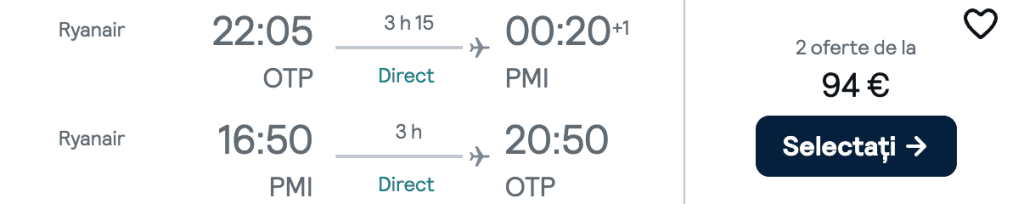 ZBOR: București -> Palma de Mallorca, Preț dus-întors 94€/pers, 14-21 Oct 2024
