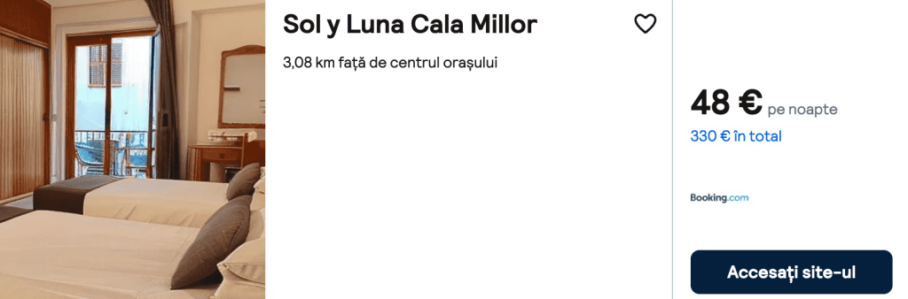 CAZARE 1: Sol y Luna Cala Millor, Preț cameră dublă 330€, Preț persoană 165€, 18-25 Mai 2025 (7 nopți)