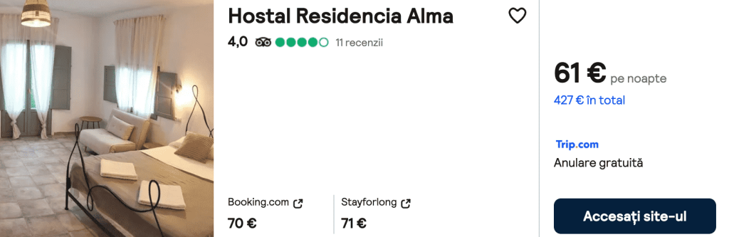 CAZARE 2: Hostal Reidencia Alma, Preț cameră dublă 427€, Preț persoană 214€, 18-25 Mai 2025 (7 nopți)