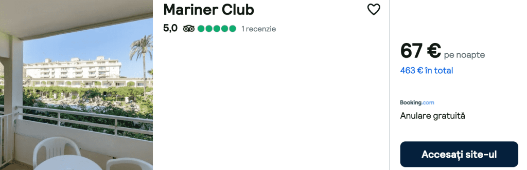 CAZARE 3: Mariner Club, Preț cameră dublă 463€, Preț persoană 232€, 18-25 Mai 2025 (7 nopți)