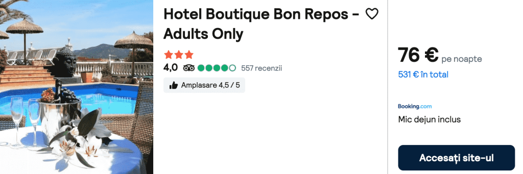 CAZARE 4 (+ Mic Dejun): Hotel Boutique, Preț cameră dublă 531€, Preț persoană 266€, 18-25 Mai 2025 (7 nopți)