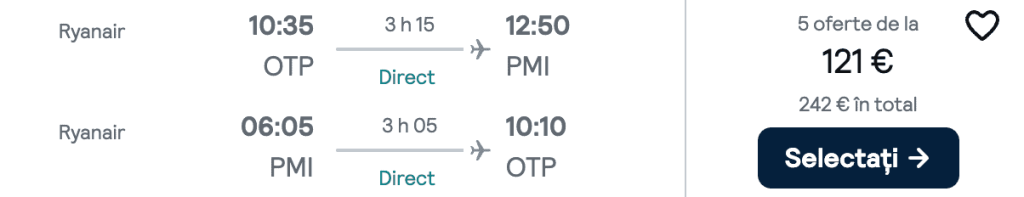 ZBOR: București -> Mallorca, Preț dus-întors 121€/pers, 18-25 Mai 2025
