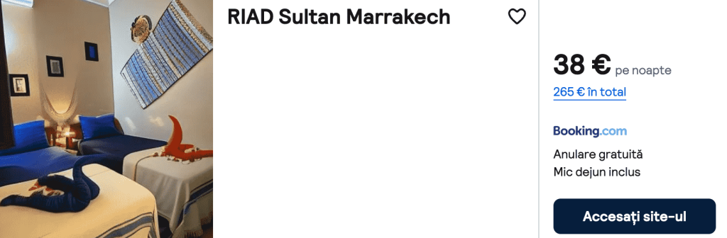 CAZARE 3 (+Mic Dejun): Riad Sultan, Preț cameră dublă 265€, Preț persoană 133€, 12-19 Dec 2025 (7 nopți)
