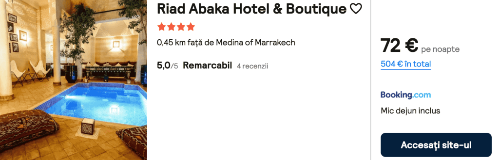 CAZARE 4(+Mic Dejun): Riad Abaka Hotel&Boutique, Preț cameră dublă 504€, Preț persoană 252€, 12-19 Dec 2025 (7 nopți)