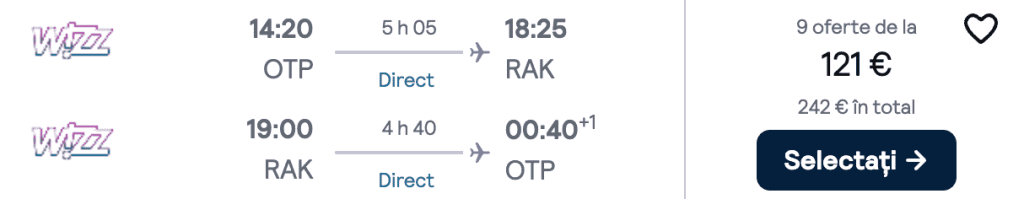 ZBOR: București -> Marrakech, Preț dus-întors 121€/pers, 12-19 Dec 2025