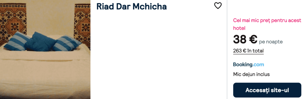 CAZARE 1: Riad Dar Mchicha, Preț cameră dublă 263€, Preț persoană 132€, 30 Ian-6 Feb 2026 (7 nopți)