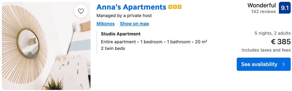 CAZARE 3: Anna’s Apartments, PreÈ› cameră dublă 385€, PreÈ› persoană 193€, 7-12 Iun 2026 (5 nopÈ›i)