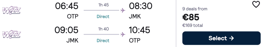ZBOR: București -> Mykonos, Preț dus-întors 85€/pers, 7-12 Iun 2026