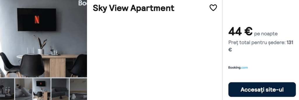 CAZARE 3: Sky View Apartment, Preț cameră dublă 131€, Preț persoană 66€, 13-16 Oct 2024 (3 nopți)