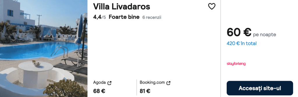CAZARE 1: Villa Livadaros, Preț cameră dublă 420€, Preț persoană 210€, 22-29 Iun 2025 (7 nopți)
