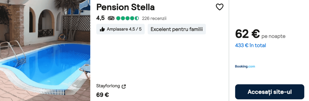 CAZARE 2: Pension Stella, Preț cameră dublă 433€, Preț persoană 217€, 22-29 Iun 2025 (7 nopți)