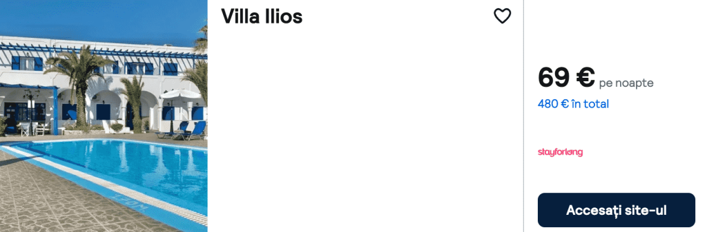 CAZARE 3: Villa Ilios, Preț cameră dublă 480€, Preț persoană 240€, 22-29 Iun 2025 (7 nopți)