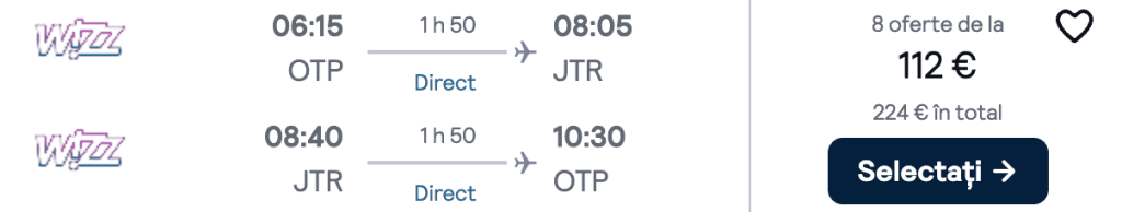 ZBOR: București -> Santorini, Preț dus-întors 112€/pers, 22-29 Iun 2025