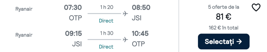 ZBOR: București -> Skiathos, Preț dus-întors 81€/pers, 24 Sep-1 Oct 2025