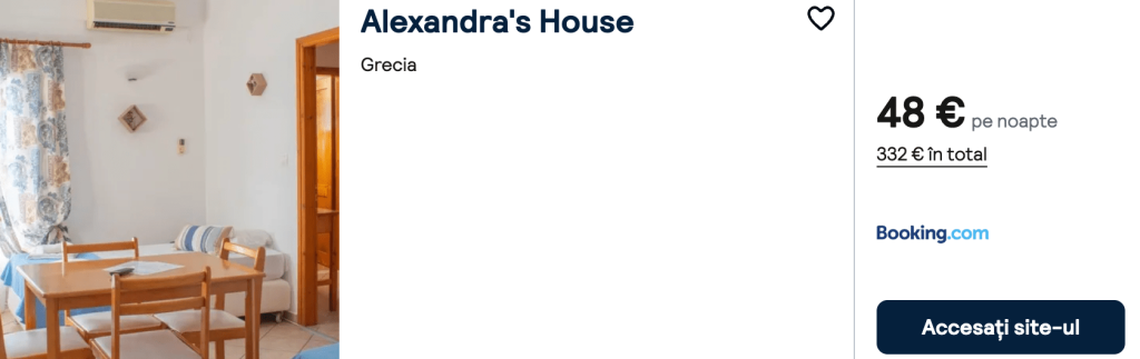 CAZARE 3: Alexandra’s House, Preț cameră dublă 332€, Preț persoană 166€, 28 Sep-5 Oct 2025 (7 nopți)