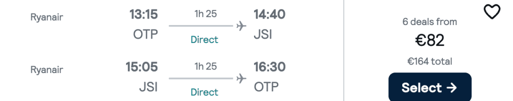 ZBOR: București -> Skiathos, Preț dus-întors 82€/pers, 28 Sep-5 Oct 2025