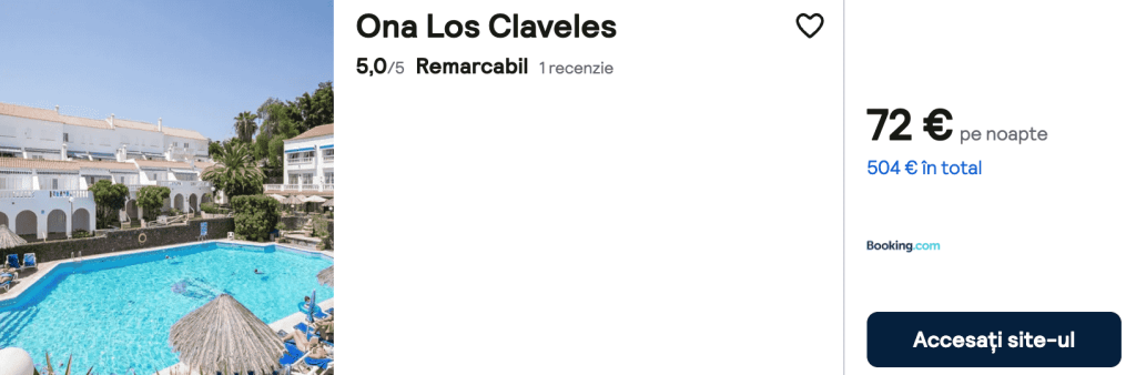 CAZARE 3: Ona Los Claveles, Preț cameră dublă 504€, Preț persoană 252€, 28 Mai-4 Iun 2025 (7 nopți)