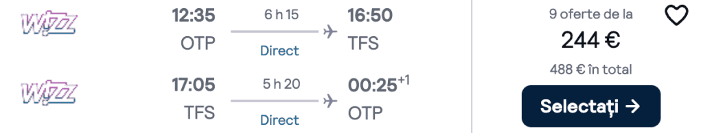 ZBOR: București -> Tenerife, Preț dus-întors 244€/pers, 28 Mai-4 Iun 2025