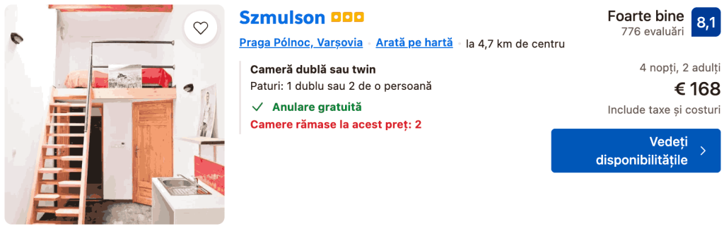 CAZARE 1: Szmulson, Preț cameră dublă 168€, Preț persoană 84€, 6-10 Iun 2026 (4 nopți)