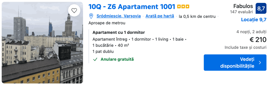 Vacanță ieftină în VARȘOVIA 128€ zbor și cazare 4 zile