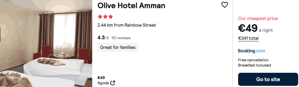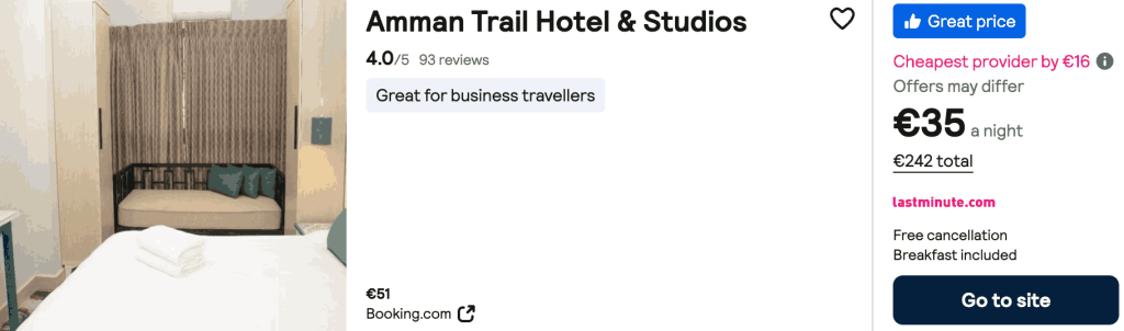 CAZARE 2 (+ mic dejun): Amman Trail Hotel&Studios, Preț cameră dublă 242€, Preț persoană 121€, 1-8 Iun 2026 (7 nopți)
