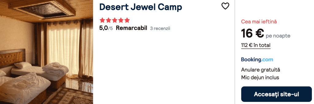 CAZARE 4: Desert Jewel Camp, Preț cameră dublă 112€, Preț persoană 56€, 18-25 Nov 2025 (7 nopți)