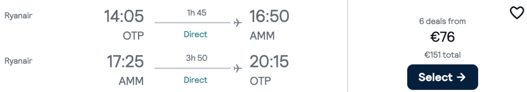 ZBOR: București -> Amman, Preț dus-întors 76€/pers, 18-25 Nov 2025