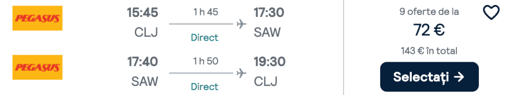 ZBOR: Cluj -> Istanbul, Preț dus-întors 72€/pers, 28 Iun-3 Iul 2025