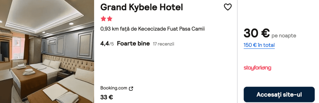 CAZARE 1: Grand Kybele Hotel, Preț cameră dublă 150€, Preț persoană 75€, 22-27 Iun 2025 (7 nopți)