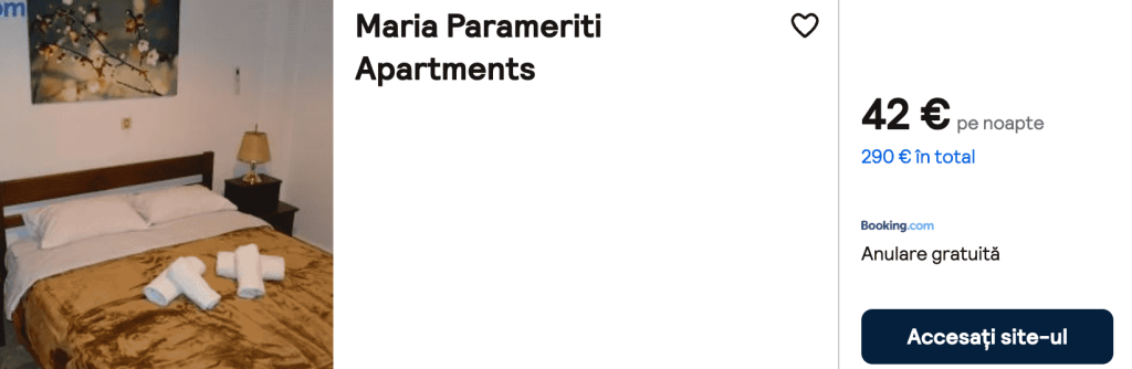 CAZARE 2: Maria Parameriti, Preț cameră dublă 290€, Preț persoană 145€, 15-22 Sep 2025 (7 nopți)