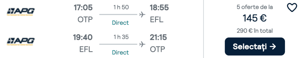 ZBOR: București -> Kefalonia (Animawings), Preț dus-întors 145€/pers, 15-22 Sep 2025