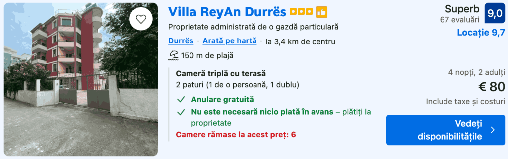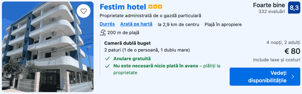 La banii ăștia nu ai cum să refuzi! Vacanță cu vreme bună și prețuri mici la mare în DURRES, ALBANIA cu doar 74€ pentru zbor dus-întors și cazare 4 nopți.