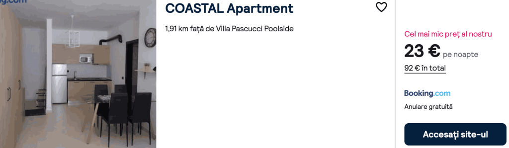 CAZARE 3: Coastal Apartment, Preț cameră dublă 92€, Preț persoană 46€, 23-27 Mai 2026 (4 nopți)