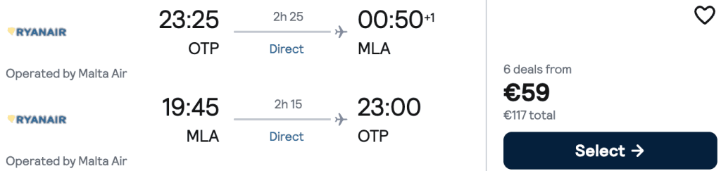 ZBOR: București -> Malta, Preț dus-întors 59€/pers, 18-25 Apr 2026